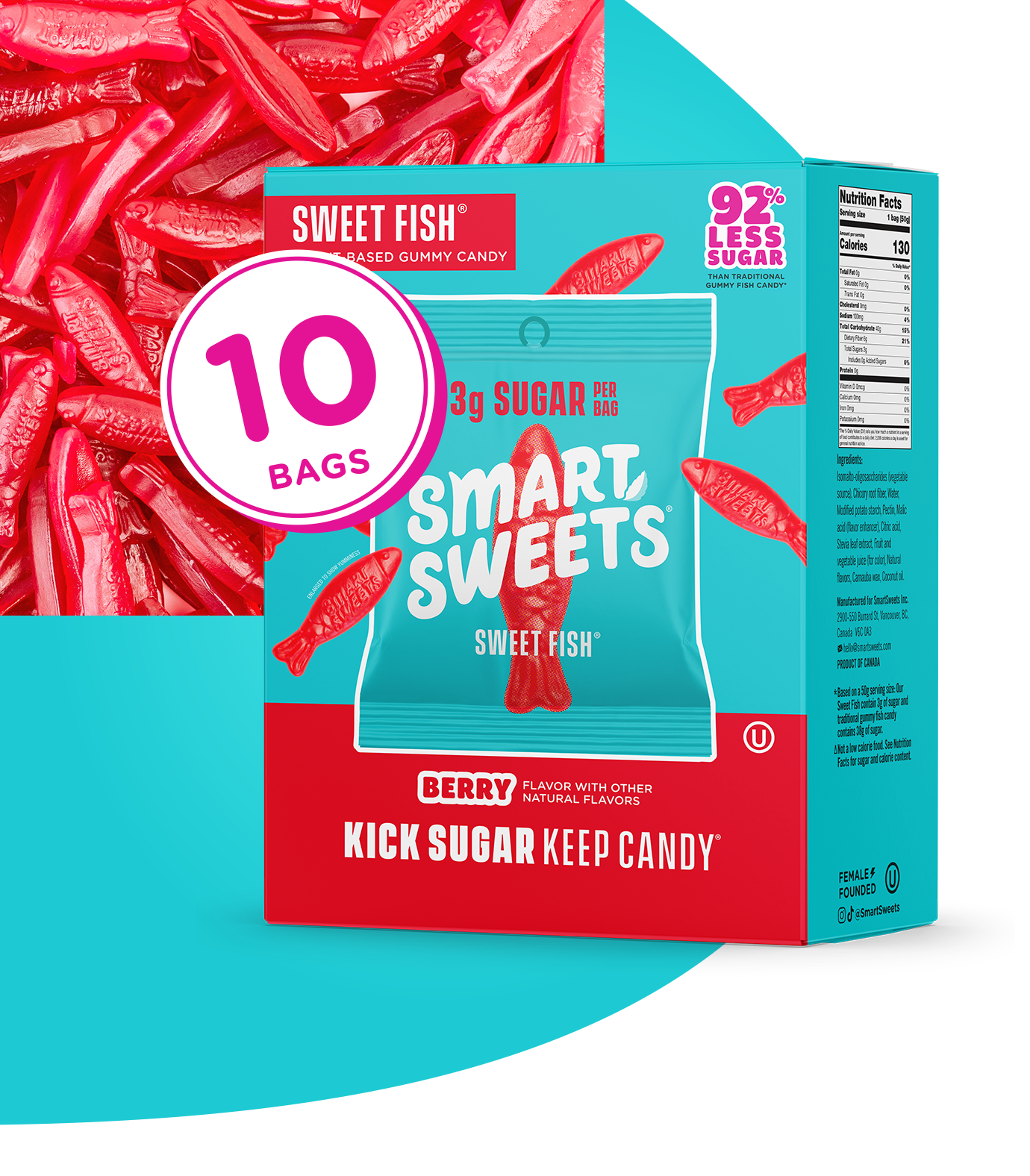 * SmartSweets Sweet Fish 50g versus leading traditional candy equivalent