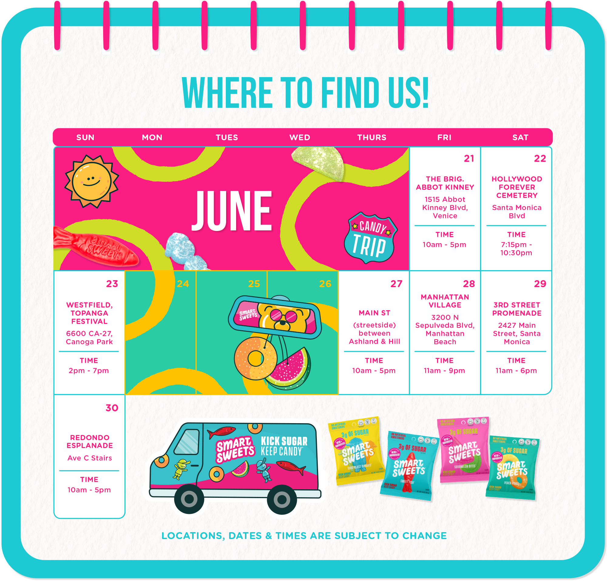 SmartSweets is popping up across LA this June, and we want to meet you! Come find our Candy Cruiser to try our New & Improved recipe and latest innovations.