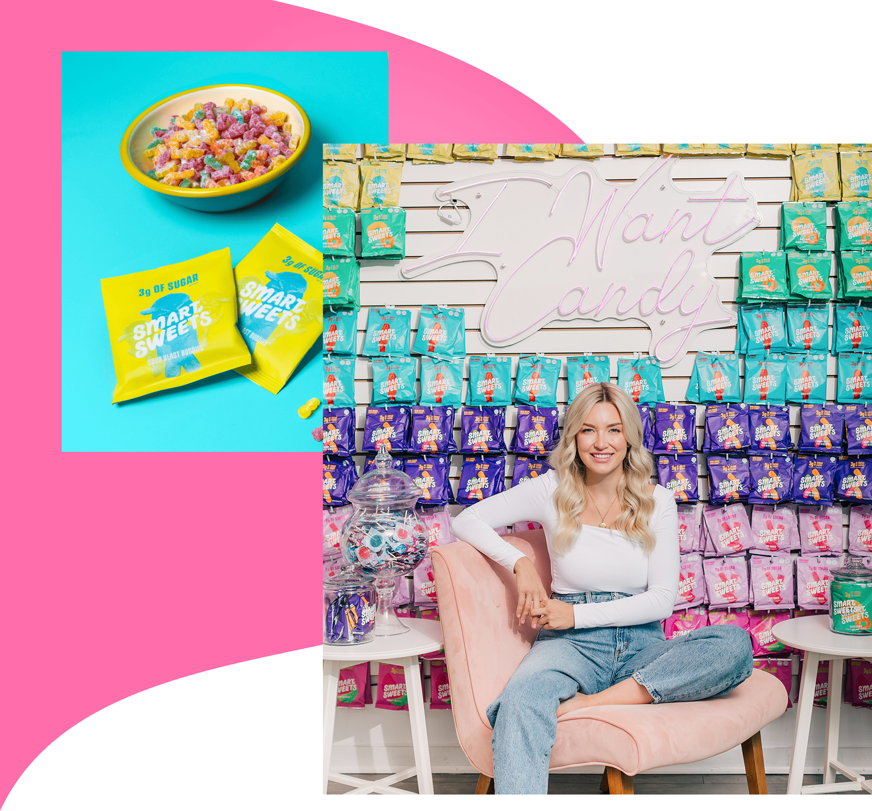 “I've always had a love affair with candy. I started SmartSweets when I recognized I wanted to change my relationship with candy after experiencing the negative effects excess sugar has on our health. I tried to eat less sugar, but that only led me to crave candy even more, sparking my quest to Kick Sugar, Keep Candy! After spending months recipe testing in my kitchen with a gummy bear mould from Amazon, I innovated the first delicious candy - without all the sugar."