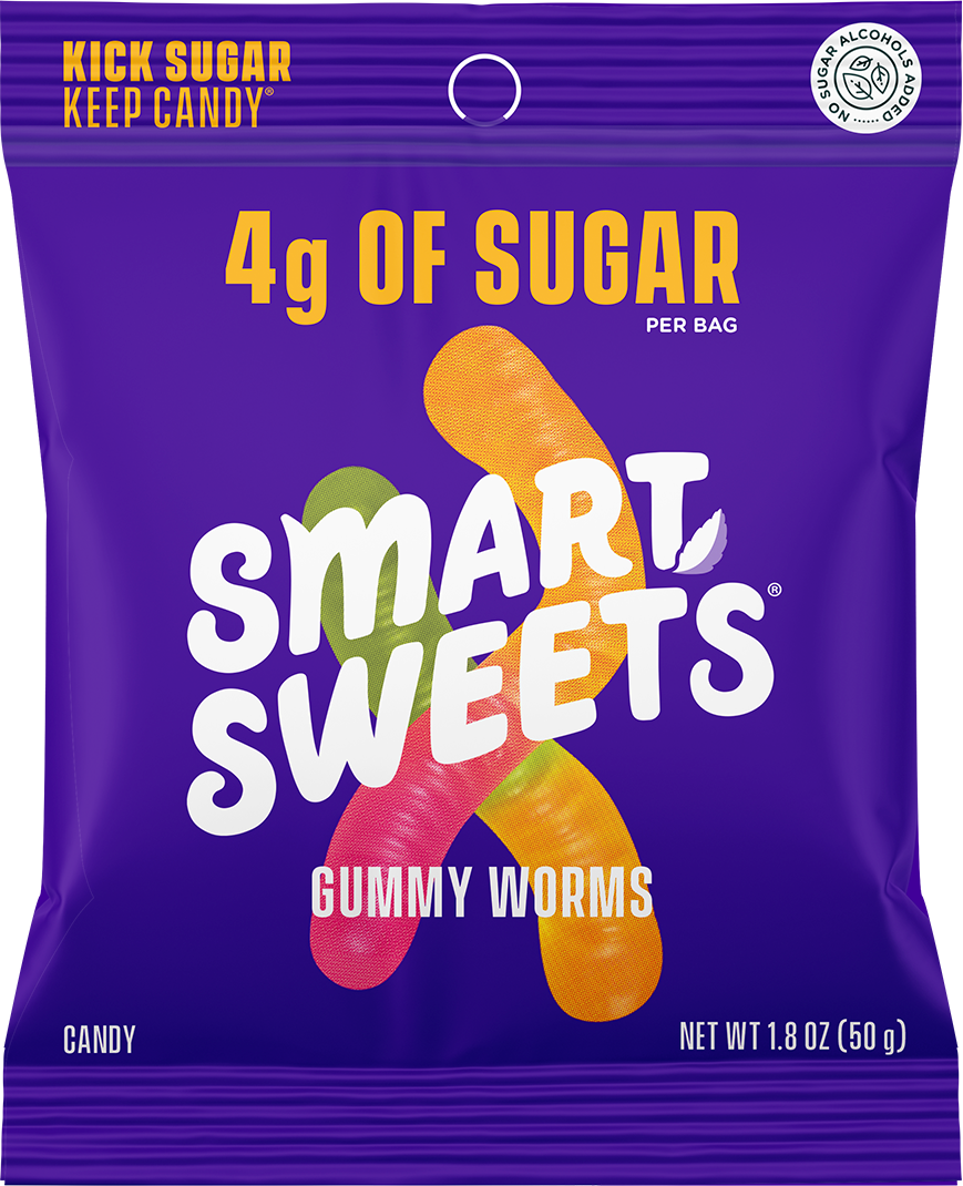 Have you ever noticed the first and primary ingredient in most traditional candy is sugar? We are committed to innovating the delicious candy you know and love with less sugar! SmartSweets candy has up to 92% less sugar per 50g serving versus the leading traditional candy equivalents – creating a world filled with sweeter choices. Feel good about candy!