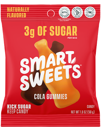 *SmartSweets Cola Gummies 50g versus leading traditional candy equivalent