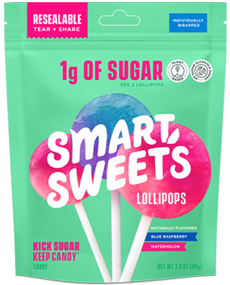 *SmartSweets Lollipops (12.4g) versus leading traditional candy equivalent