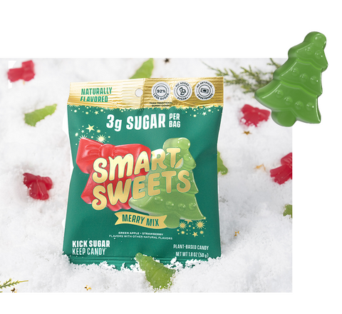 Smart Sweets candy package with green background and colorful text