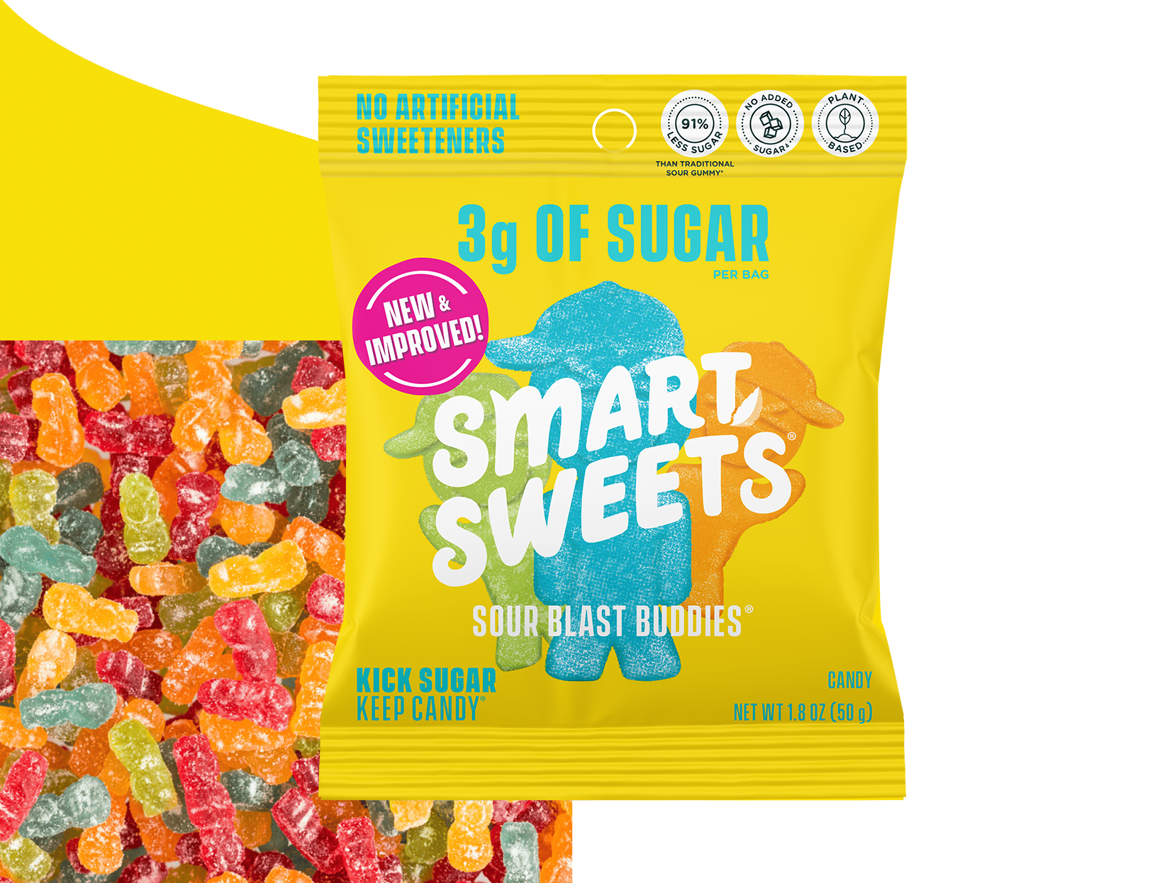 *SmartSweets Sour Blast Buddies 50g versus leading traditional candy equivalent