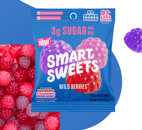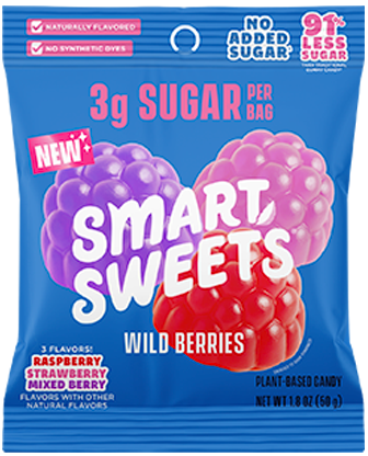 *SmartSweets Wild Berries 50g versus leading traditional candy equivalent